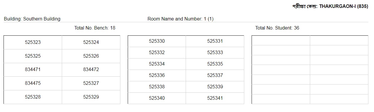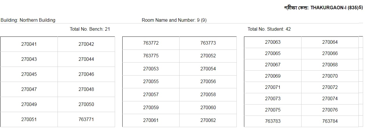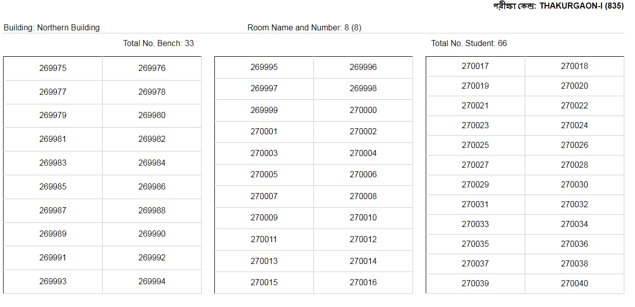 কেন্দ্র : ঠাকুরগাঁও আই-৮৩৫ এর আসন বিন্যাসন।