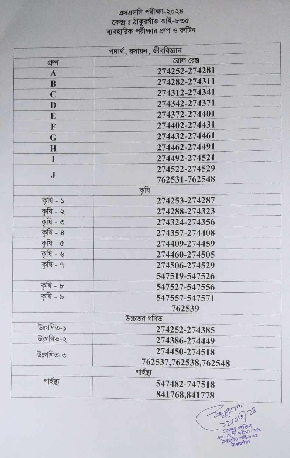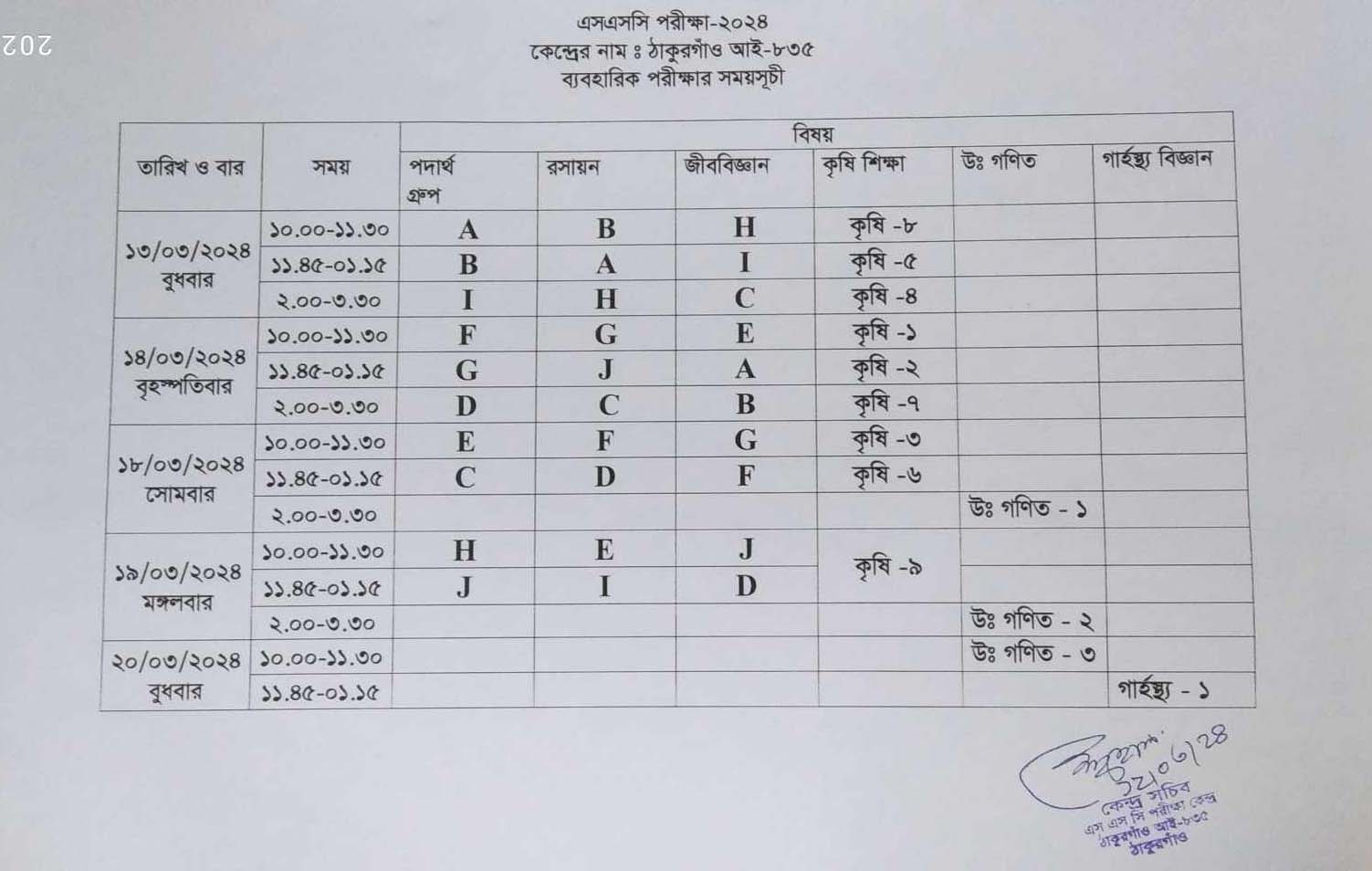 এসএসসি পরীক্ষা ২০২৪ কেন্দ্র : ঠাকুরগাঁও আই-৮৩৫ ব্যবহারিক পরীক্ষার গ্রুপ বিন্যাস ও রুটিন।